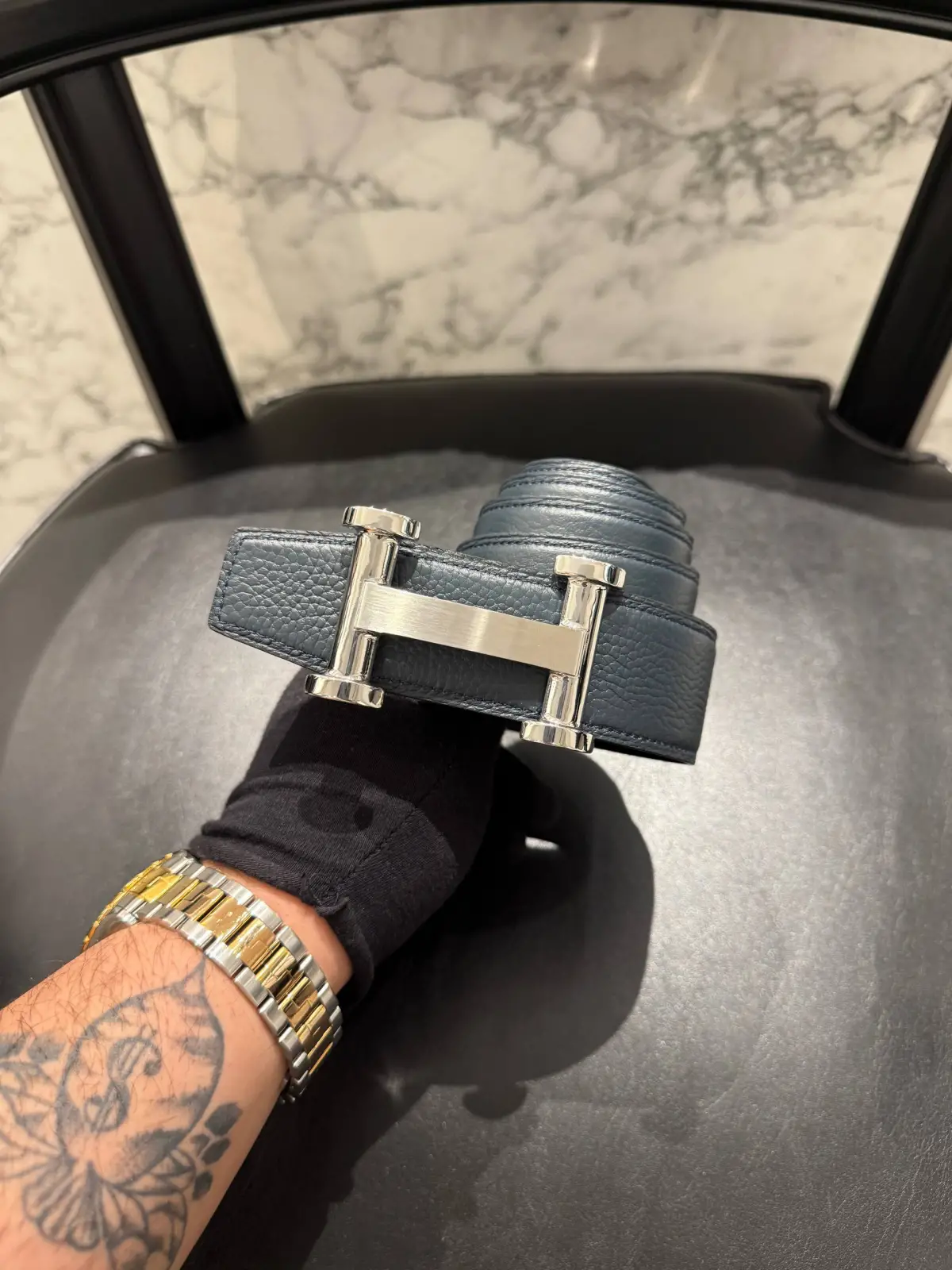 HERMES Siyah Deri Kemer