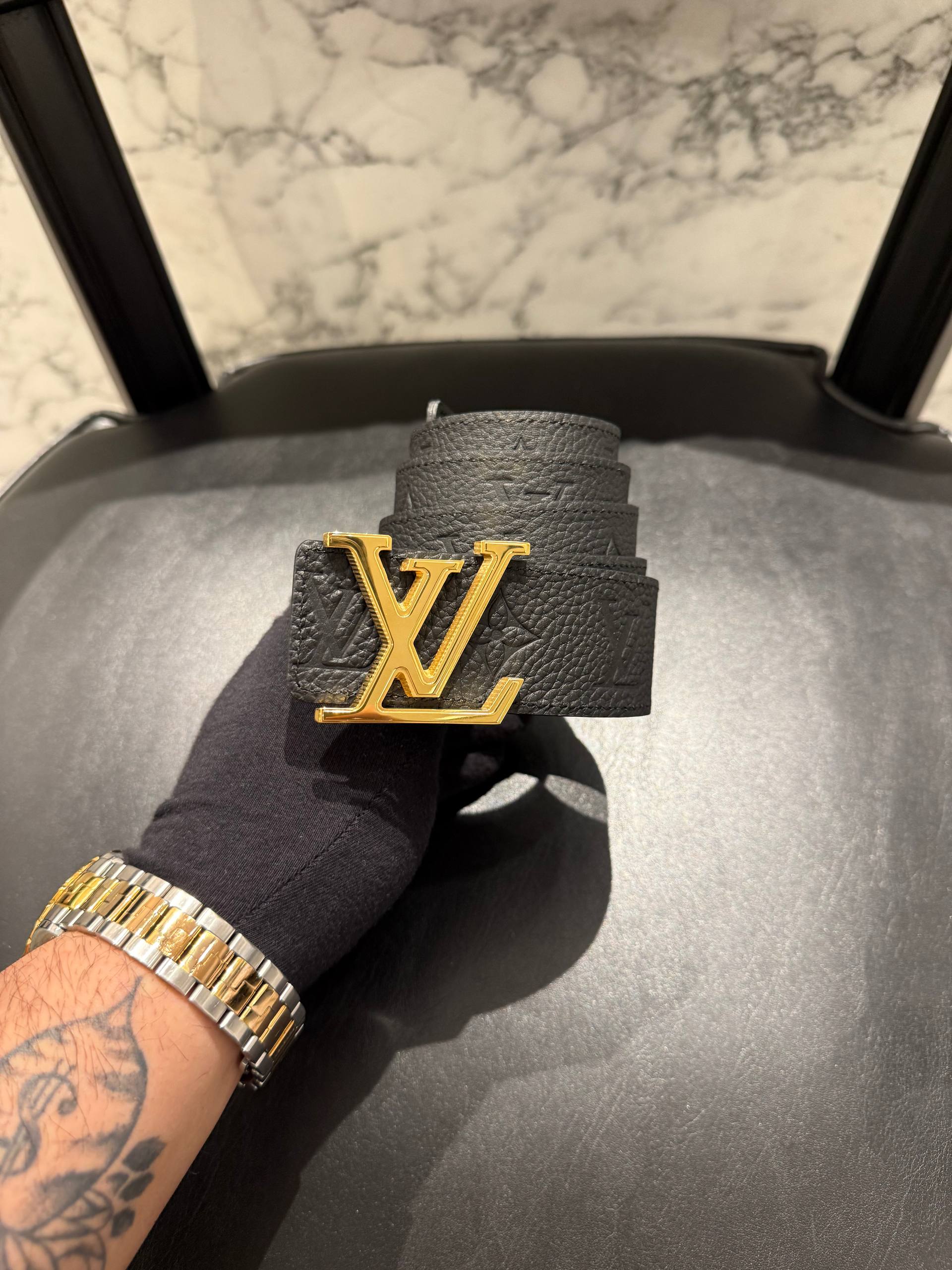 LOUIS VOUITTON Gold Toka Siyah Desenli Deri Kemer