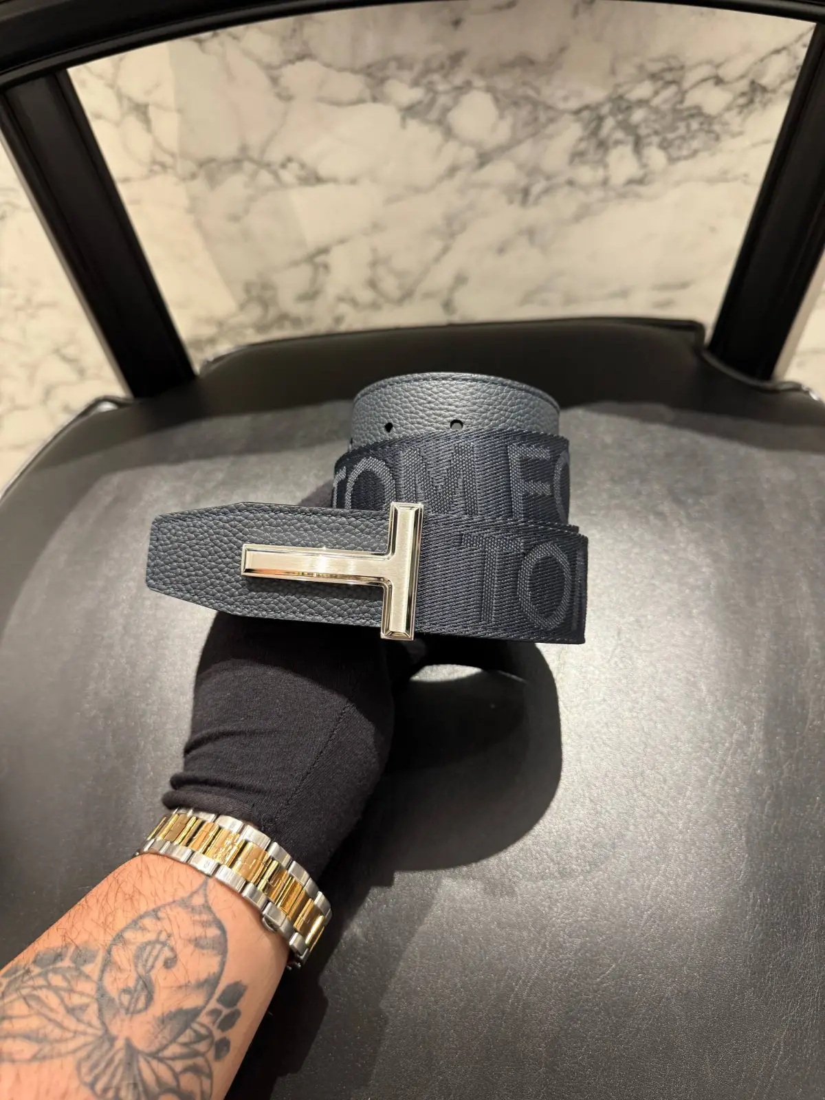 TOMFORD Gold Toka Deri-Kumaş Kemer