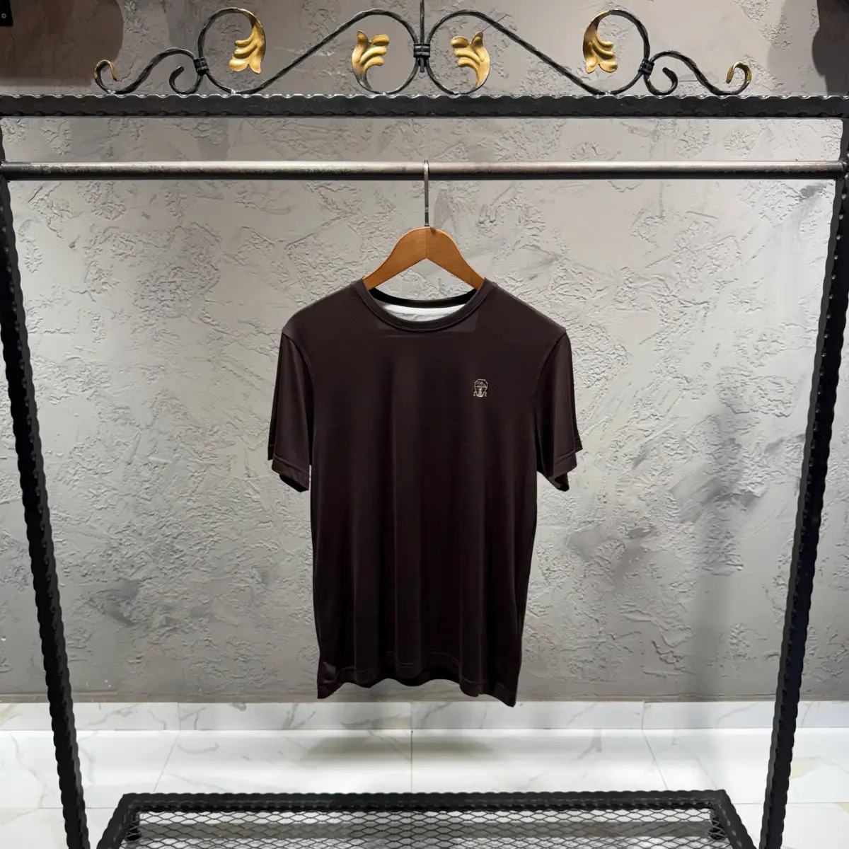 BRUNELLO CUCINELLI Kahverengi Logo Detay Tişört