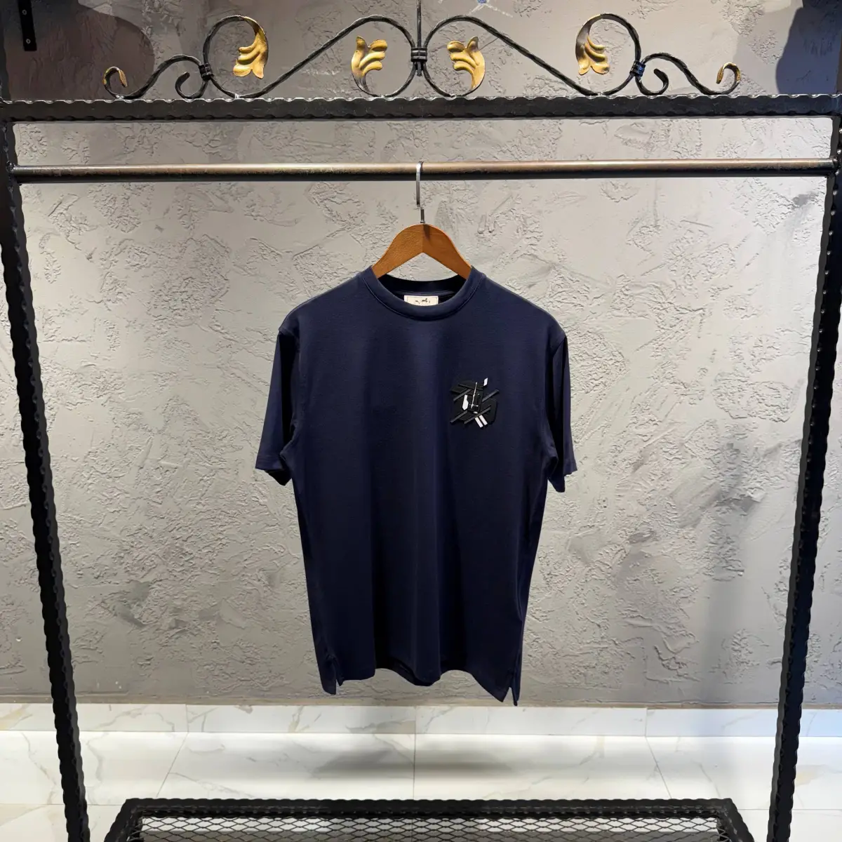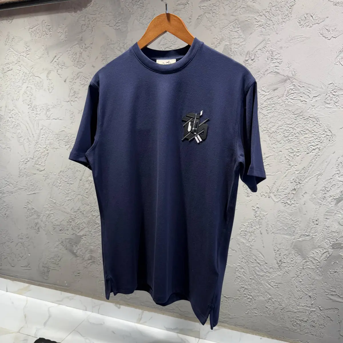 Hermes Lacivert Deri Logo Tişört