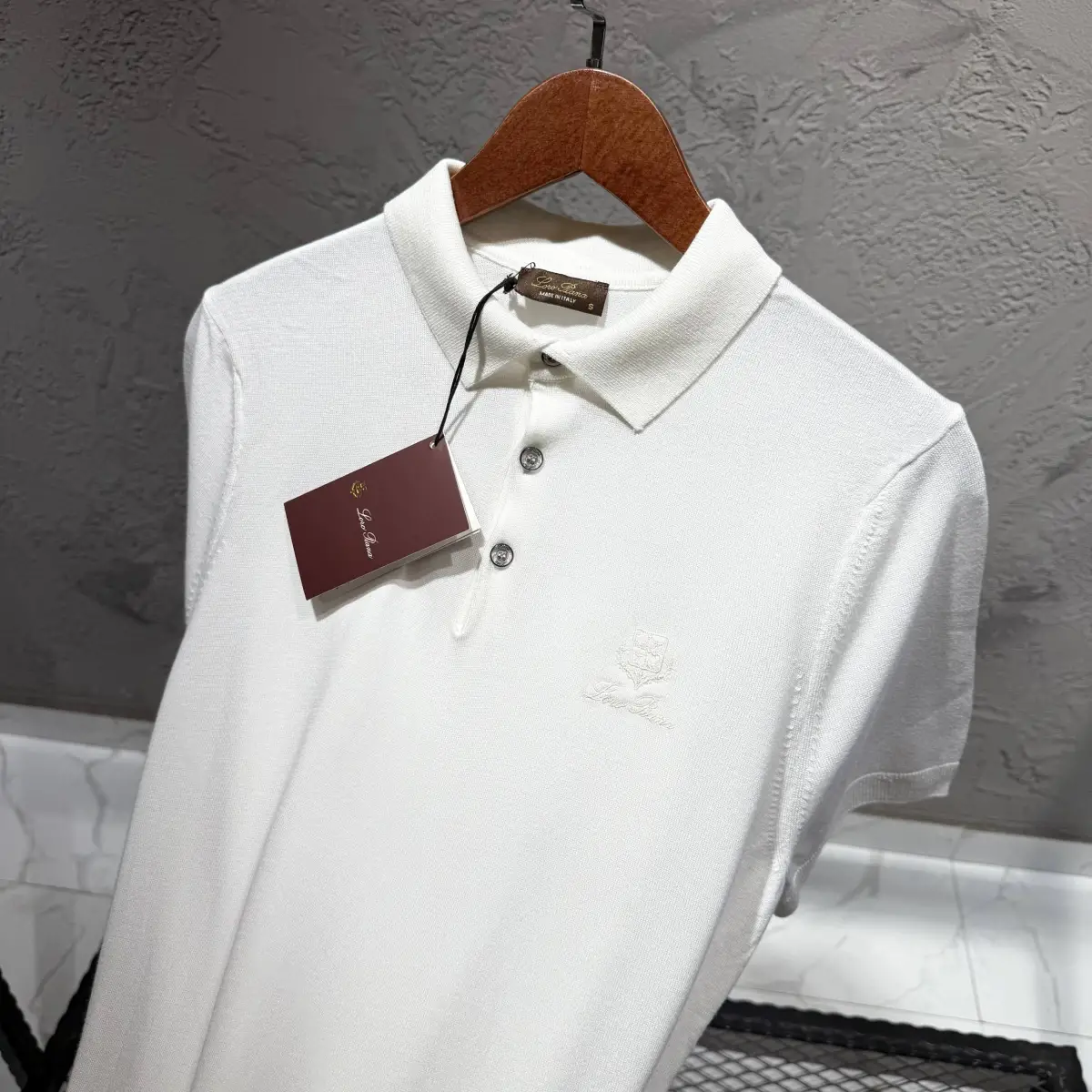 LORO PIANA Beyaz Triko Nakış Detay Tişört