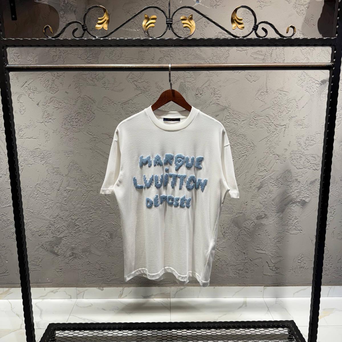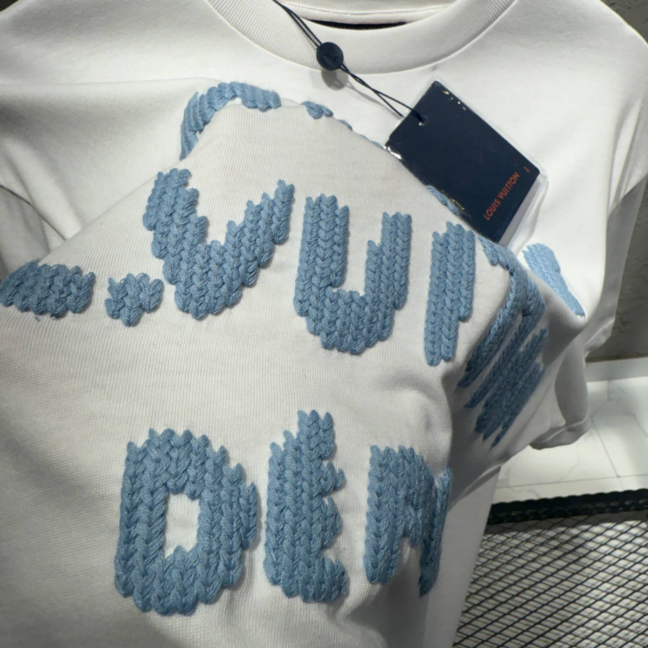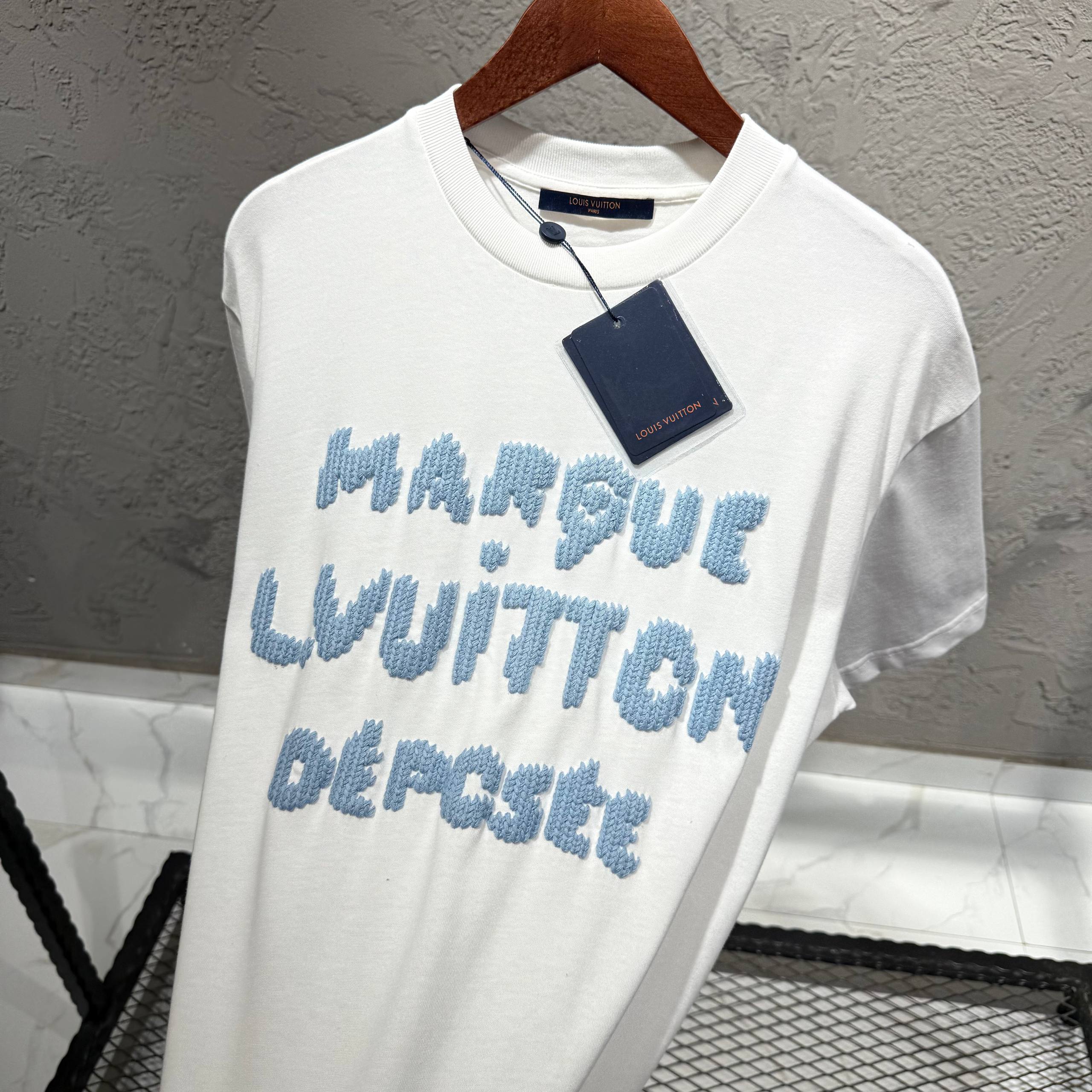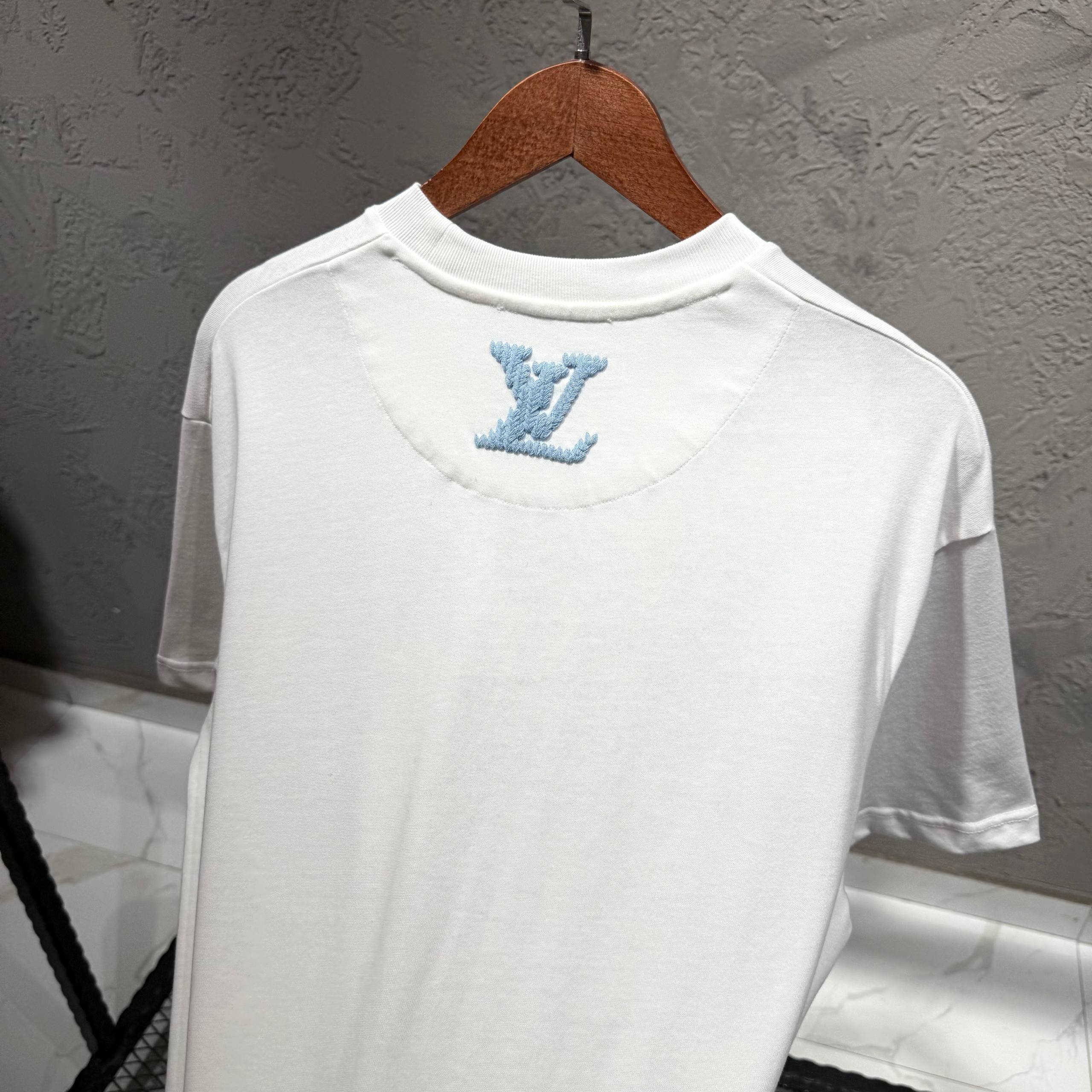 LOUIS VUITTON Beyaz Mavi Nakış Tişört
