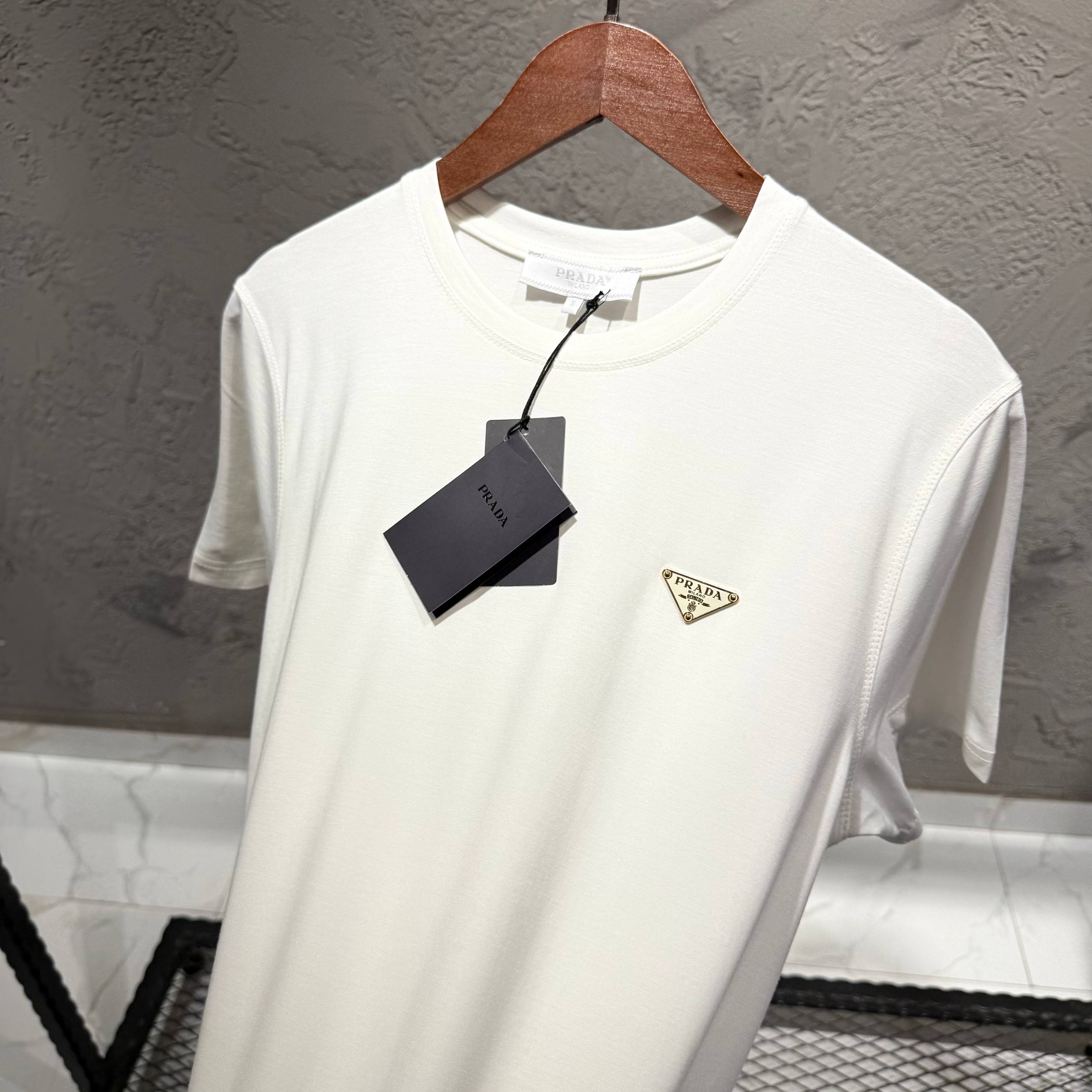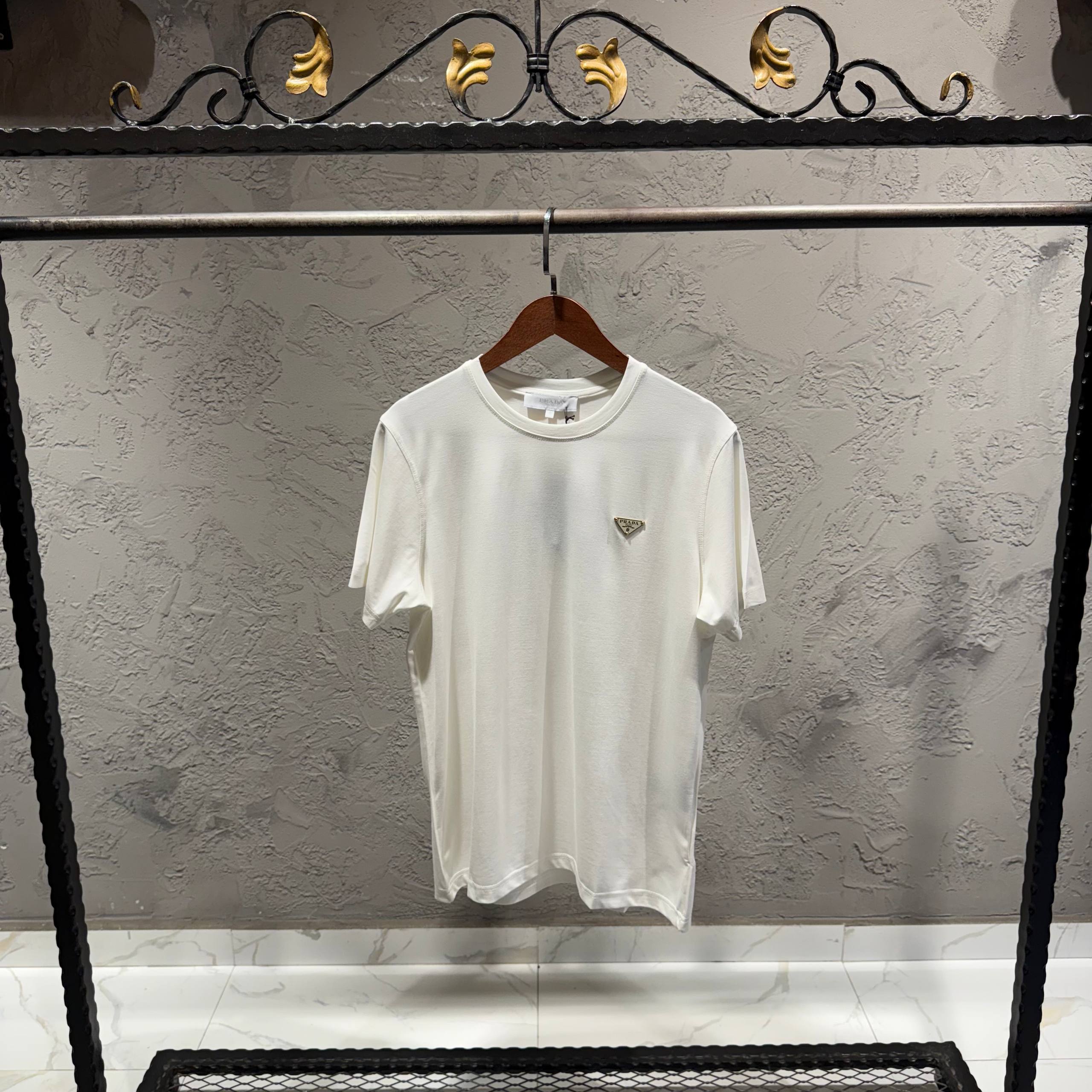 PRADA Beyaz Gold Toka Detay Tişört