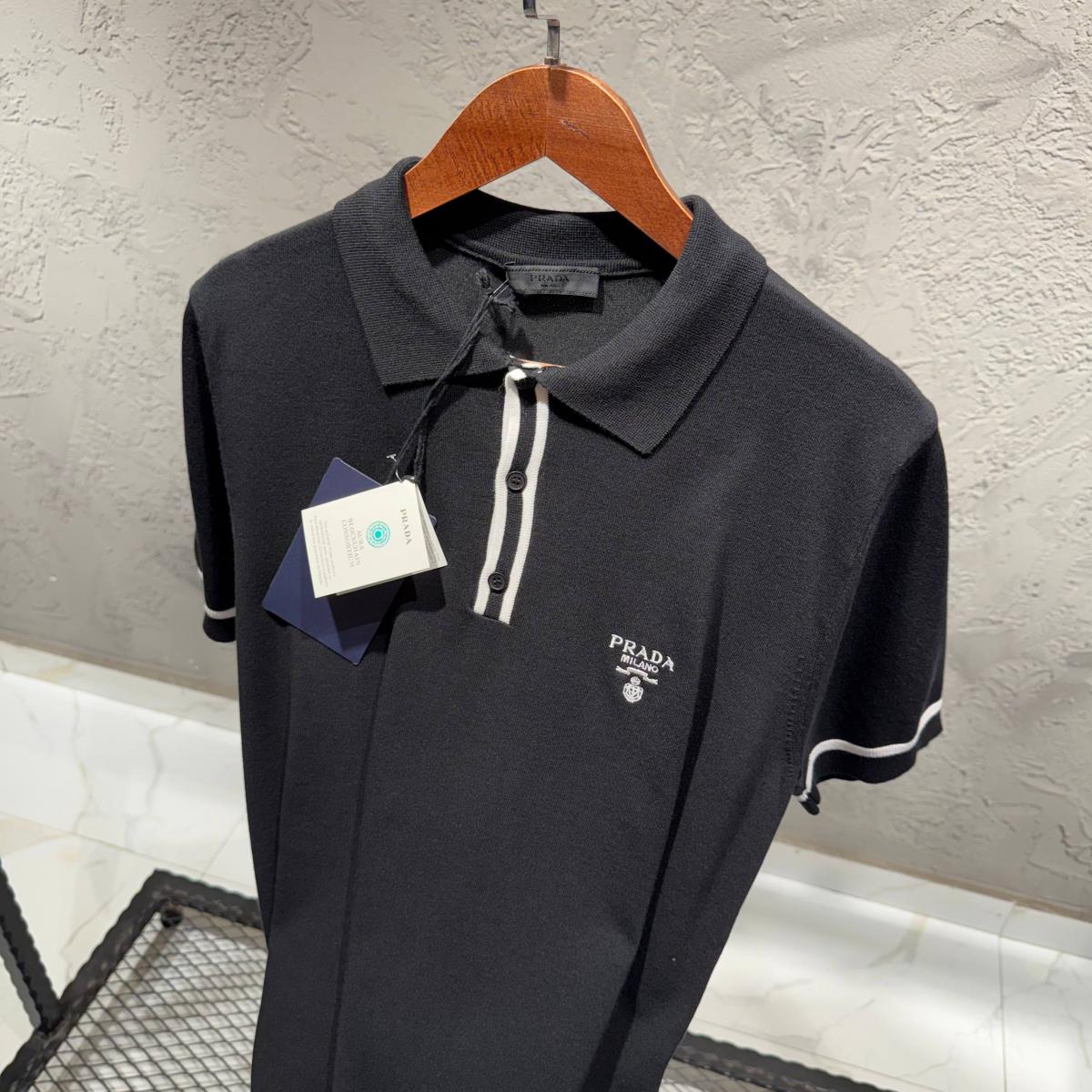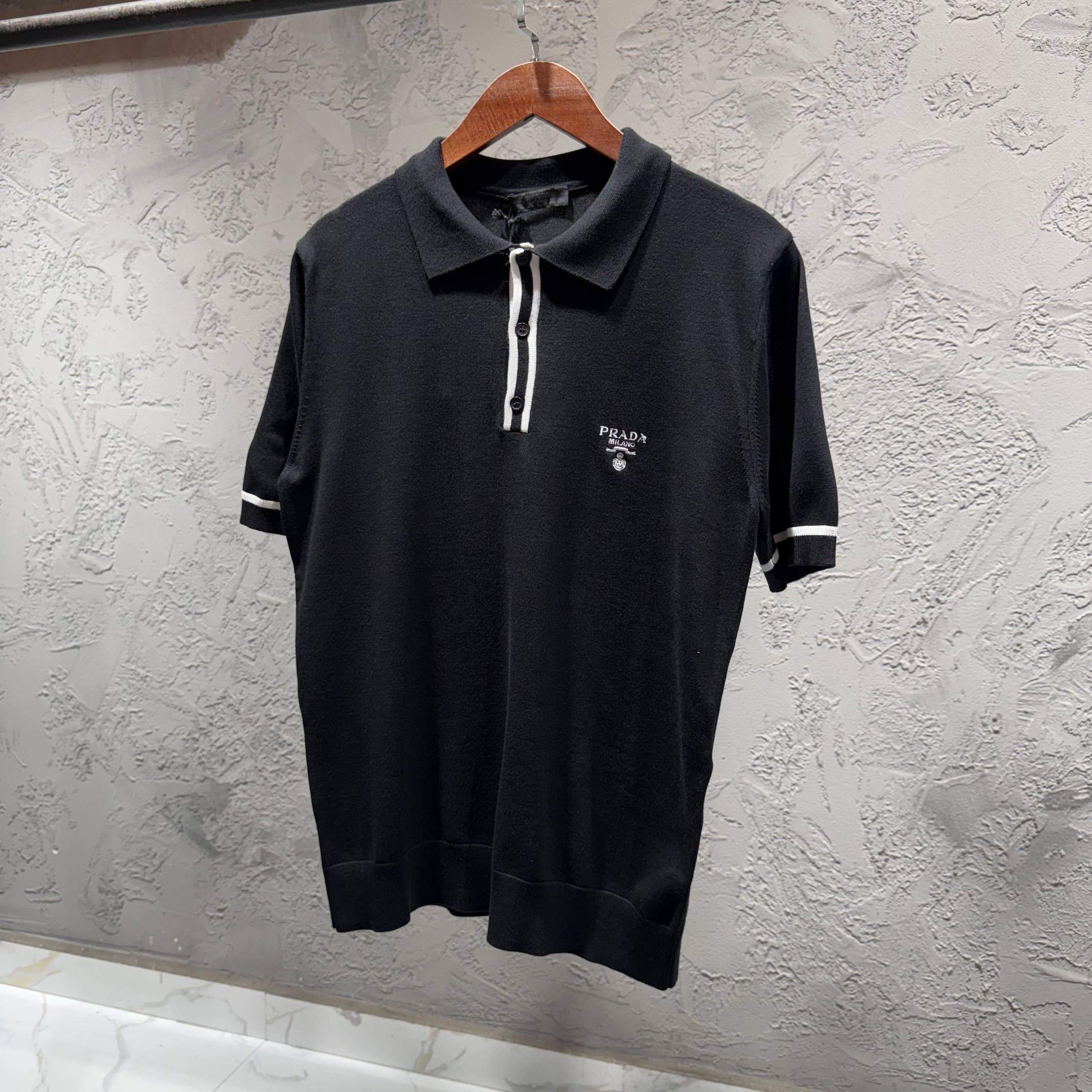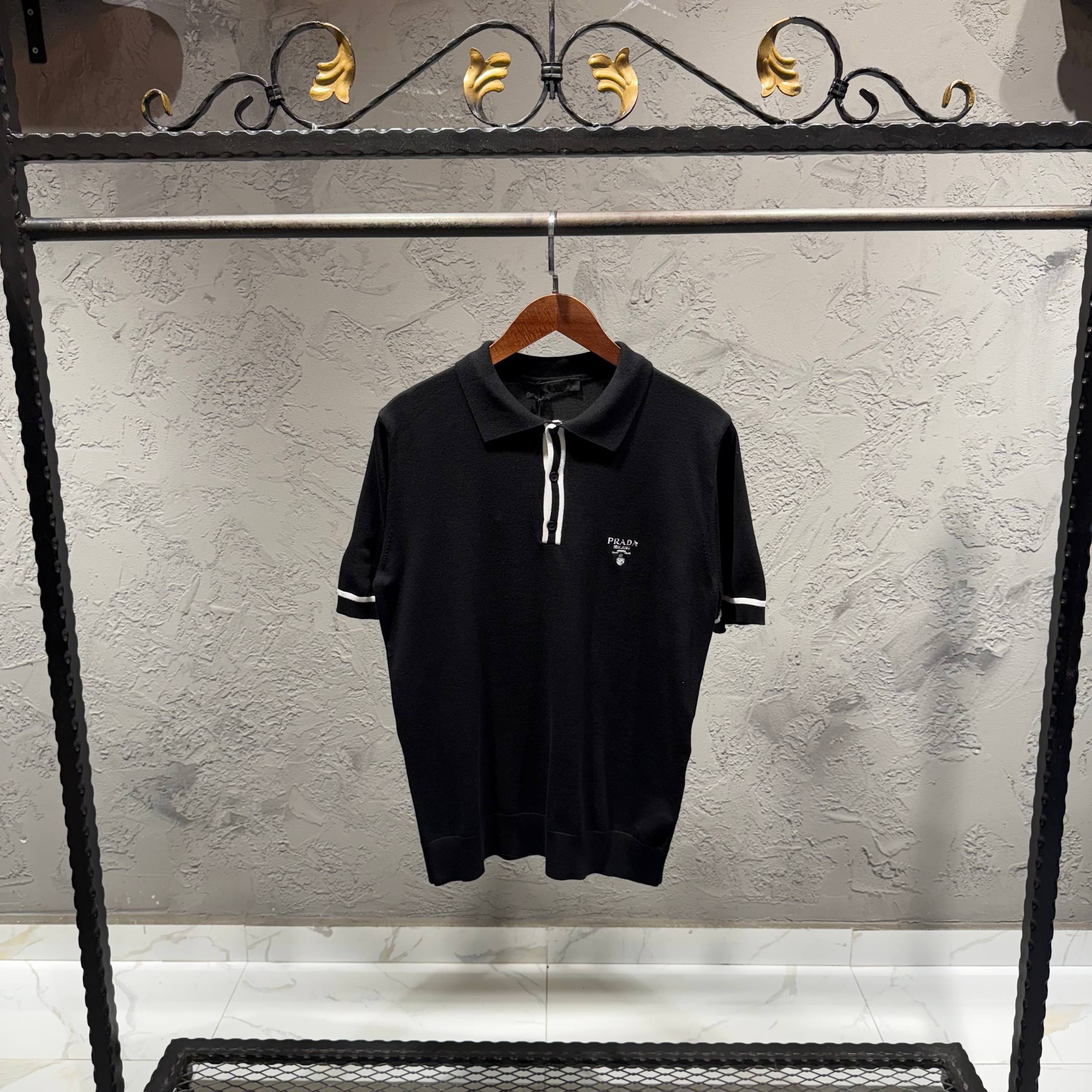 PRADA Siyah Triko Nakış Detay Tişört